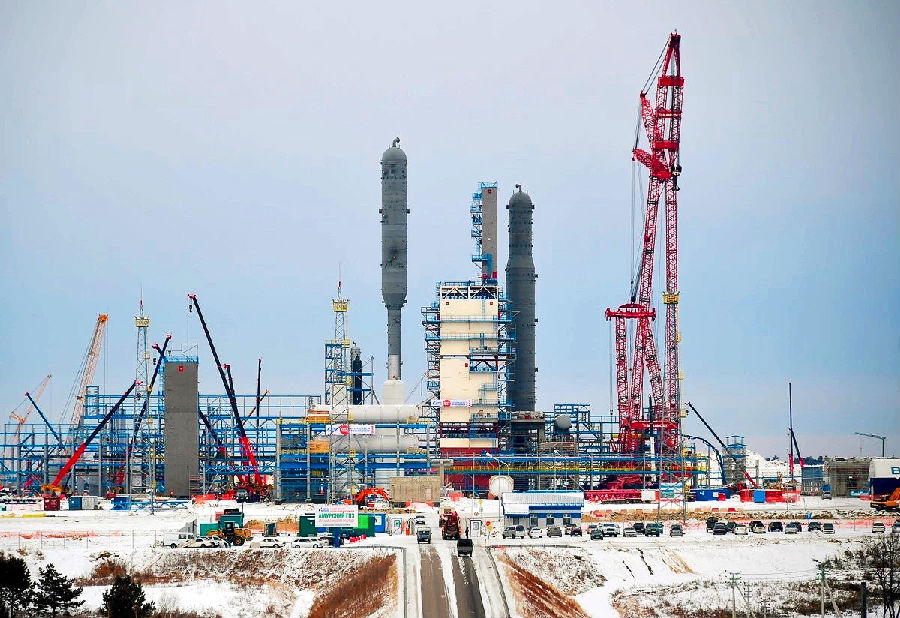 該項(xiàng)目位于俄羅斯阿穆?tīng)栔菟刮植┑聝?nèi)區(qū),距離中國(guó)黑河約200公里,是中俄第二條大型能源走廊——中俄天然氣管道東線的源頭,投產(chǎn)后年原料氣處理能力達(dá)420億立方米,每年可向中國(guó)輸送天然氣380億立方米。